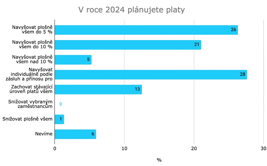 „Mzdy podle výpovědí firem porostou také. Nejvíce se budou zvyšovat mzdy individuálně podle zásluh a alespoň 5% přidání se dočká polovina zaměstnanců,“ uvádí Martina Machová. Zároveň ale připomíná, že propad reálných mezd byl v končícím roce opravdu výrazný a pokud firmy platy loni a letos nenavyšovaly, nárůst do 10 % rozhodně nedožene inflaci. „Podle ČNB totiž celková inflace roku 2023 dosáhne 11 % a v roce 2022 to bylo dokonce 15 %,“ připomíná Machová.