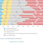 Aktivně (6 %) a částečně (14 %) si hledá novou práci 20 % dotazovaných, což o je 5 procentních bodů méně než v předchozím čtvrtletí. Nové zaměstnání aktuálně hledají zejména lidé zaměstnaní ve výrobě potravin (20 %) a také v oboru hotelnictví a stravování (20 %). S rostoucím stupněm dosaženého vzdělání respondentů se již tradičně počet těch, kteří hledají práci, snižuje.