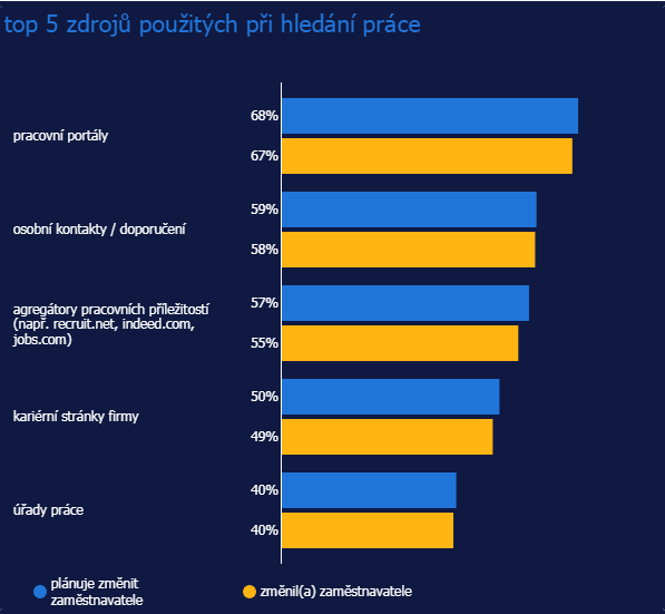 I když pracovní portály stále hrají prim, jejich význam mírně slábne. Při hledání práce je v loňském roce využilo 67 % respondentů průzkumu, letos to bude o 1 procento méně. Naop