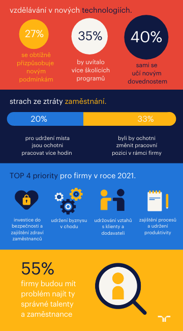 Z průzkumu Workmonitor dále vyplynulo, že většina pracovníků považuje rozšiřování dovedností za odpovědnost sdílenou zaměstnanci i zaměstnavateli. Přesto, že až 79 % dotázaných firem uvádí, že mají vybavení a technologie potřebné k přizpůsobení se digitalizaci, se vzděláváním svých zaměstnanců a jejich rekvalifikací ve svých plánech vesměs nepočítají. K jejich prioritám dle průzkumu Pulse Survey personálně poradenské společnosti Randstad budou v roce 2021 patřit v prvé řadě investice do bezpečnosti a zajištění zdraví zaměstnanců, udržení byznysu v chodu, udržování vztahů s klienty a dodavateli, zajištění procesů a udržení produktivity.