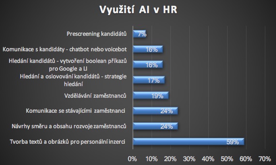 Podle průzkumu Grafton Recruitment je zavedení AI a automatizace do personálních procesů jedním z klíčových úkolů firem pro letošní rok. „Možnosti využití této technologie jsou v HR opravdu široké. Významně se dnes uplatňuje například v náboru, kde velmi dobře slouží k tvorbě textů a obrázků pro personální inzerci. Výborným pomocníkem pak je i při řízení směru a obsahu dalšího rozvoje zaměstnanců, kde pomáhá analyzovat potřeby a preference jednotlivých zaměstnanců a navrhovat relevantní vzdělávací programy. Zejména i velkých firem pak uplatnění nachází i v samotné komunikaci se zaměstnanci,“ vypočítává Jitka Kouba, marketingová ředitelka Grafton Recruitment.