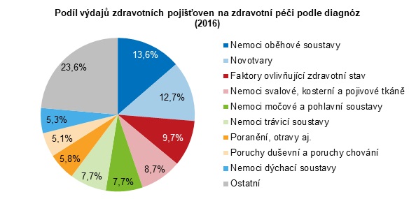 Nejvyšší výdaje hlásí zdravotní pojišťovny za léčení nemocí srdce a cév, které jsou dlouhodobě nejčastější příčinou úmrtí. V roce 2016 vynaložily v souvislosti s touto diagnózou 25,4 miliardy korun.