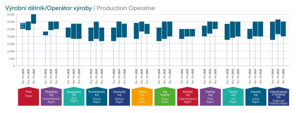 | Zdroj: Grafton Recruitment 2020, hrubá mzda v tis. Kč za měsíc vč. bonusů |